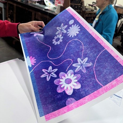 Let your inner child bloom as you create a custom backing sheet with cut paper and collage materials. When placed behind a blank sheet and run through an inked printing press, that sheet will transfer subtle variations in texture, revealing a beautiful range of tones, patterns, and impressions.